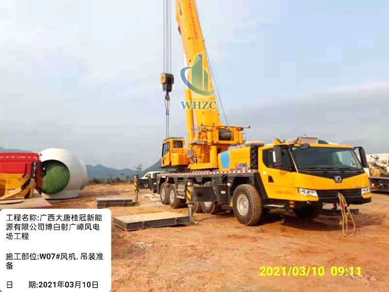 2021年新春伊始,我方广西博白风电项目就又开始忙碌起来。 半挂车将轮毂运往机位。 特种运输车运输塔筒。 前方车辆引路,后方车辆密切监控运输途中安全。 我方新购入的徐工吊车也投入到吊装现场,严阵以待,确保吊装前的工作顺利进行。