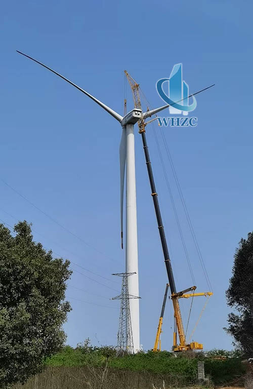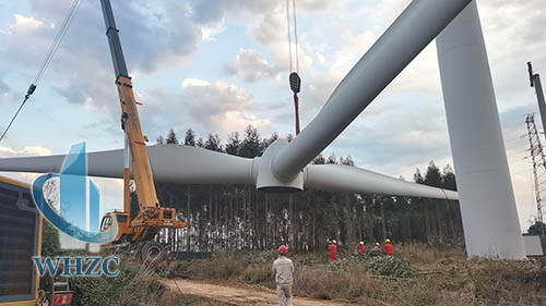 汽车吊的风电工程应对山地型风机大部件吊装得心应手。