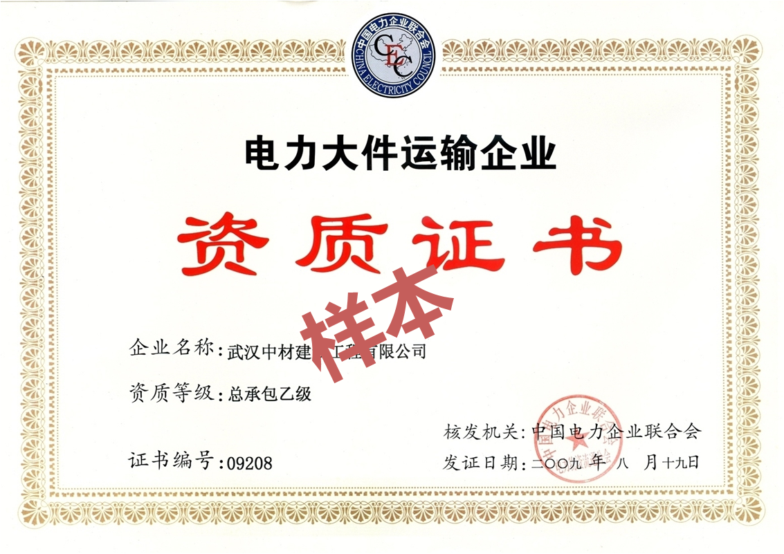 电力大件运输企业资质证书